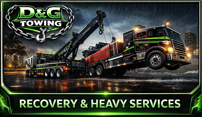 D&G Towing offers complete towing and recovery services throughout Fort Lauderdale and Broward County. We handle everything from emergency roadside towing to heavy-duty commercial recovery and private property enforcement.