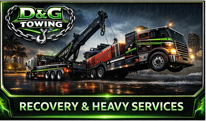 D&G Towing provides fast, professional 24/7 towing services in Fort Lauderdale and throughout Broward County, Florida. Whether you need emergency roadside towing, heavy-duty recovery, private property towing enforcement, or junk vehicle removal, our team responds quickly and professionally.